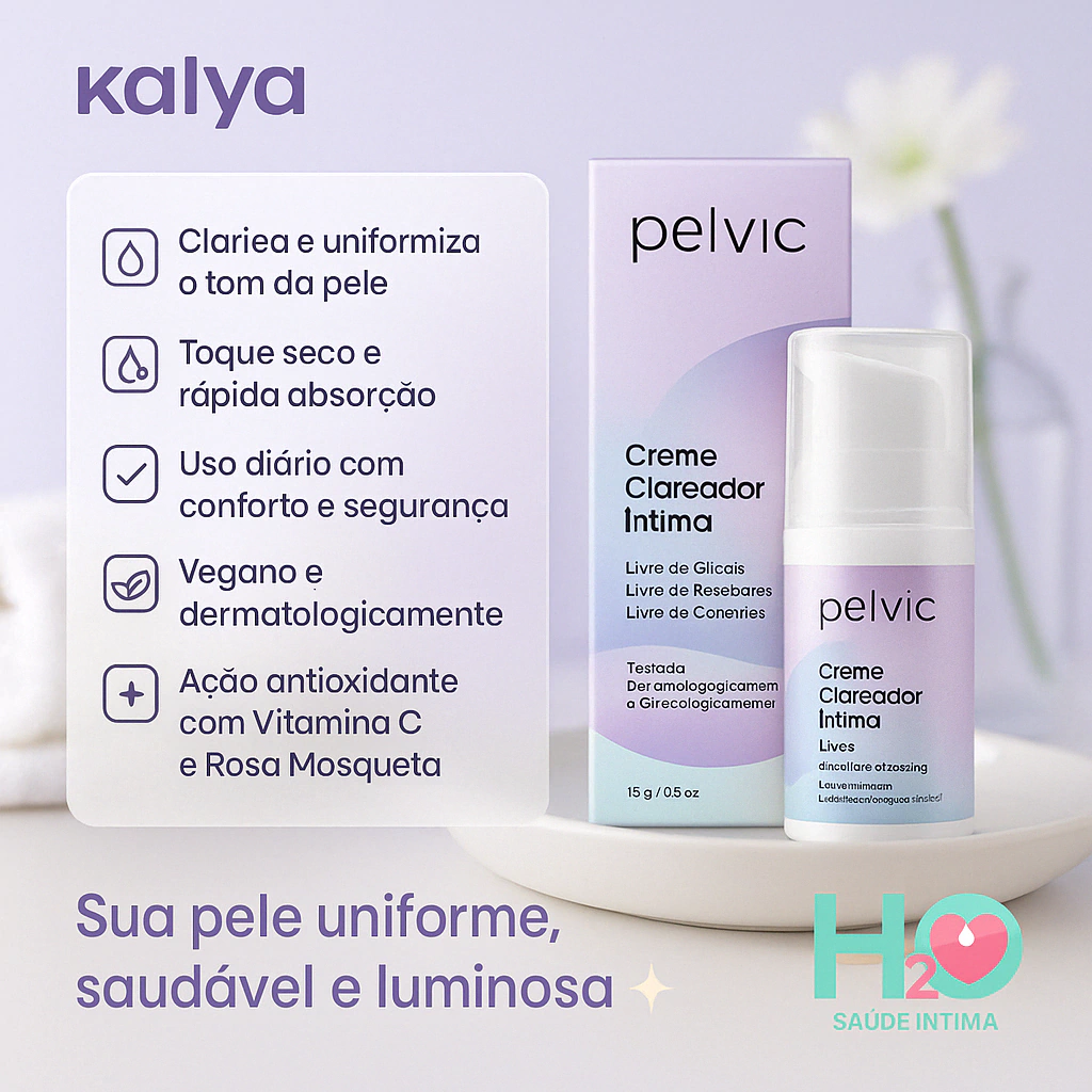 Desenvolvido especialmente para quem deseja mais autoconfiança e conforto com a própria pele, o Clareador Íntimo e Corporal Kalya Pelvic atua de forma eficaz e segura na uniformização do tom da pele, tratando manchas em regiões delicadas como virilha, axilas, cotovelos, joelhos e interno das coxas.
