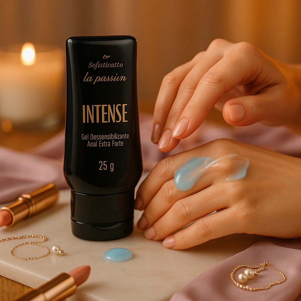 Aplique o Intense na região anal e aguarde alguns minutos antes da penetração. O efeito começa de forma progressiva, proporcionando relaxamento sem perda de sensibilidade.
