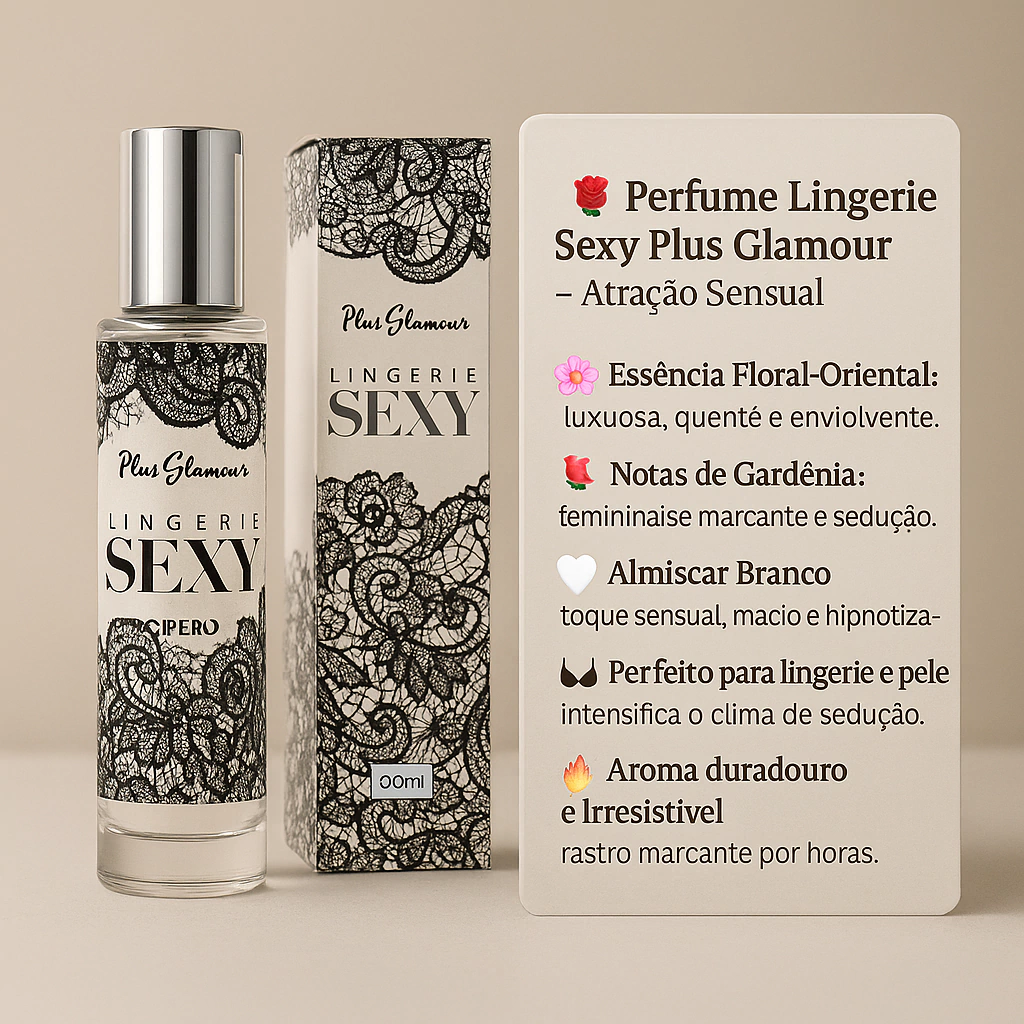 Deixe sua presença marcar como um sussurro irresistível no ar. O Perfume Lingerie Sexy Plus Glamour foi criado para despertar sensações profundas e te envolver em um rastro de puro desejo. Sua fragrância floral-oriental combina elegância, erotismo e magnetismo — o tipo de perfume que transforma qualquer momento em um convite à tentação.